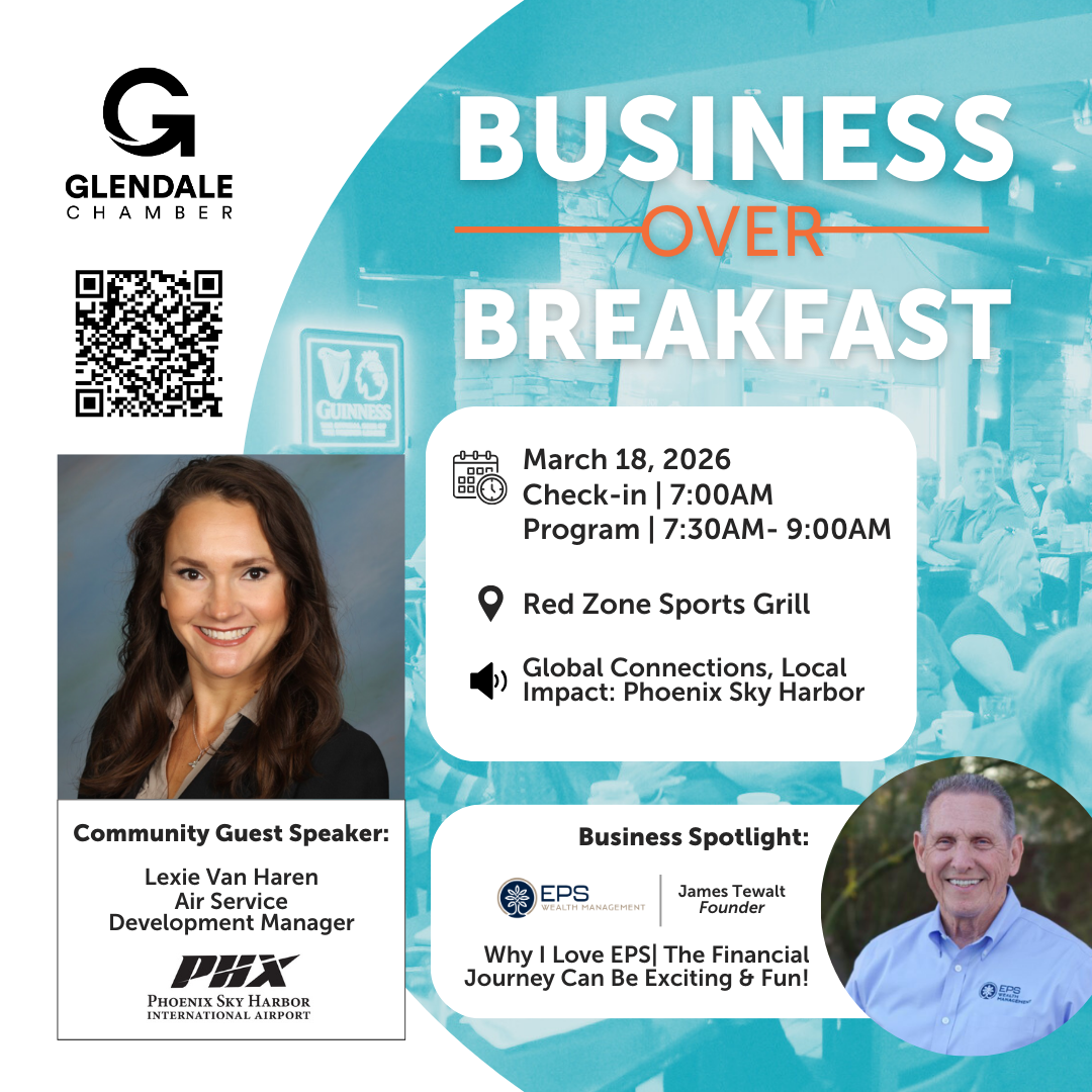 All event attendees by registering agree that their image and person may be photographed or videotaped as part of the audience. The Glendale Chamber reserves the right to use any images or video captured during its event for promotional purposes and marketing purposes.